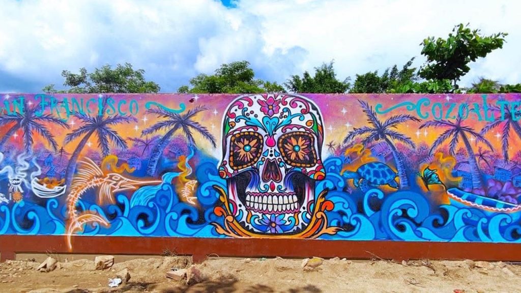 San Francisco Cozoaltepec, Tonameca.— Entre aromas de cempasúchil, pinceladas vibrantes y el eco de las tradiciones, el Panteón Municipal de San Francisco Cozoaltepec se transformó este fin de semana en un museo al aire libre con la segunda edición del Festival Costa Mural, que unió arte, cultura y memoria en un mismo lienzo.