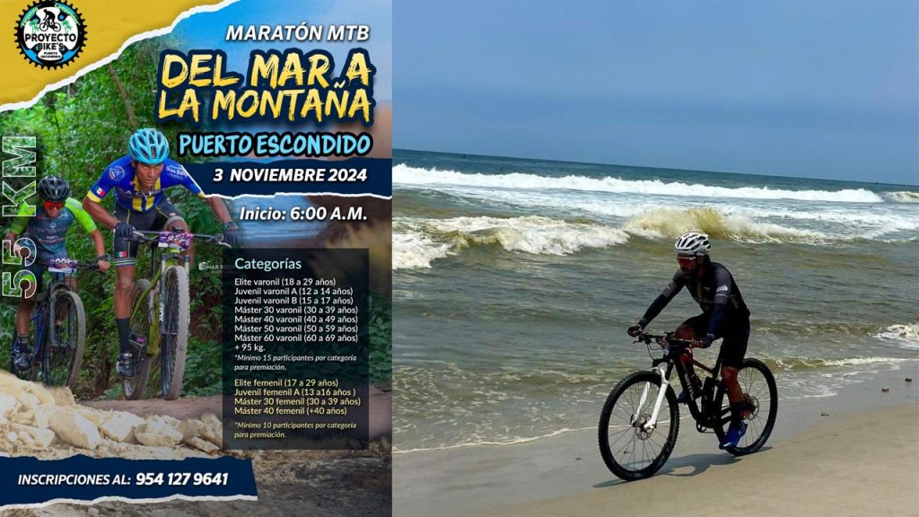 Puerto Escondido, Oax. — El próximo sábado 8 de noviembre, a partir de las 09:00 horas, dará inicio en Puerto Escondido el esperado Maratón MTB “Del Mar a la Montaña”, evento ciclístico que reunirá a competidores de diversas categorías provenientes de distintos puntos del estado.