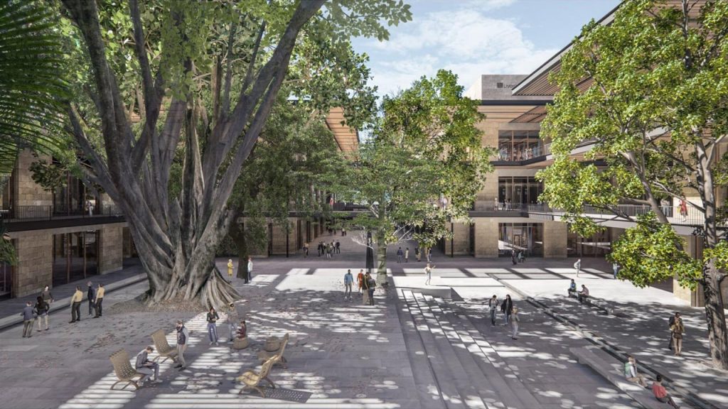 Asimismo, anunciaron la preservación o el trasplante de árboles monumentales que se encuentren en el predio, y la creación de una plaza central con vegetación nativa, cafés y espacios culturales, cuyas dimensiones equivaldrían a las de una cancha de fútbol.