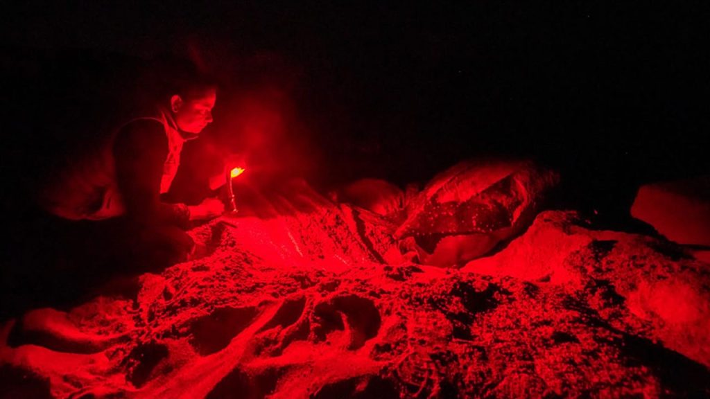 De acuerdo con el equipo del santuario, a casi dos meses del inicio de la temporada se han protegido 82 nidos en el corral de incubación, y del primero ya eclosionaron 11 crías. Este resultado es producto del trabajo conjunto de 12 monitores comunitarios de Playa Grande, quienes recorren la playa cada noche junto al equipo técnico conformado por cinco mujeres especializadas en manejo y conservación de tortugas marinas.