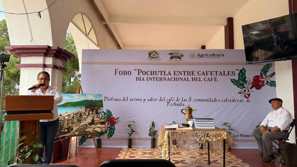 San Pedro Pochutla, Oax.- El H. Ayuntamiento de Villa de Tututepec, a través de la Dirección de Agricultura, formó parte del foro “Pochutla entre Cafetales”, realizado en el marco de la conmemoración del Día Internacional del Café.