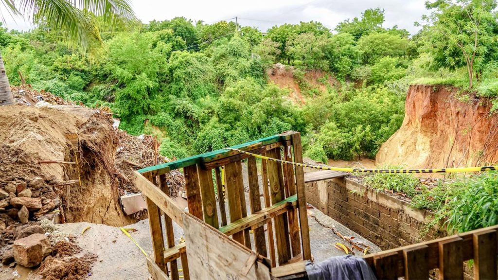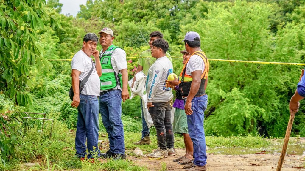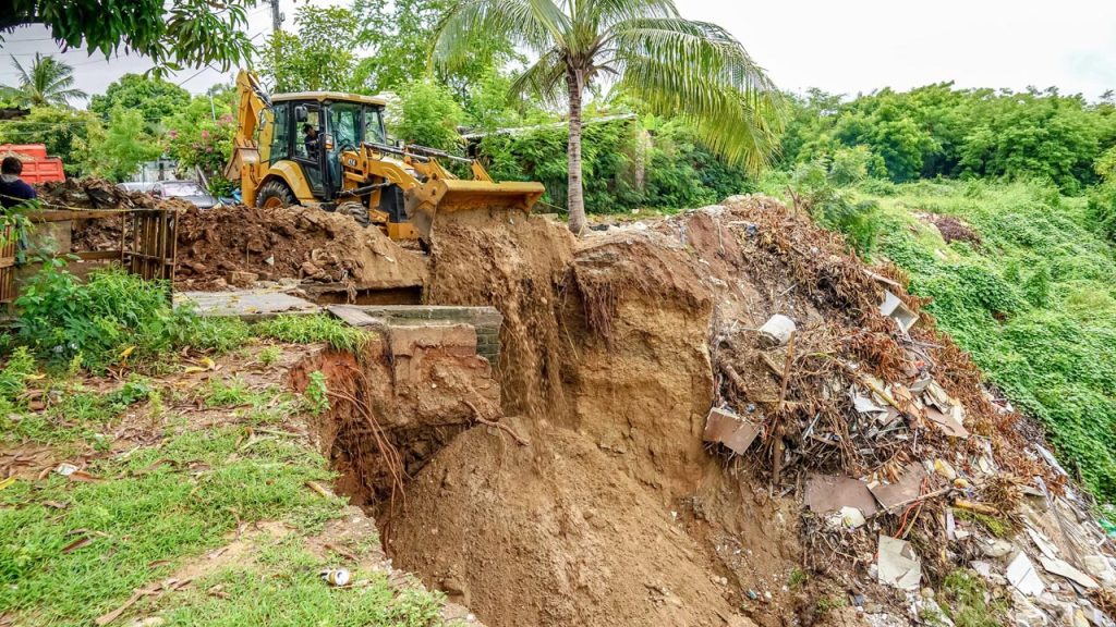 San Pedro Mixtepec, Oax.— Por instrucciones del presidente municipal, Dr. Miguel Olvera, personal del Ayuntamiento acudió al fraccionamiento La Parota VIVAH para atender un socavón que, a causa de las intensas lluvias recientes, representa un riesgo para las viviendas cercanas.