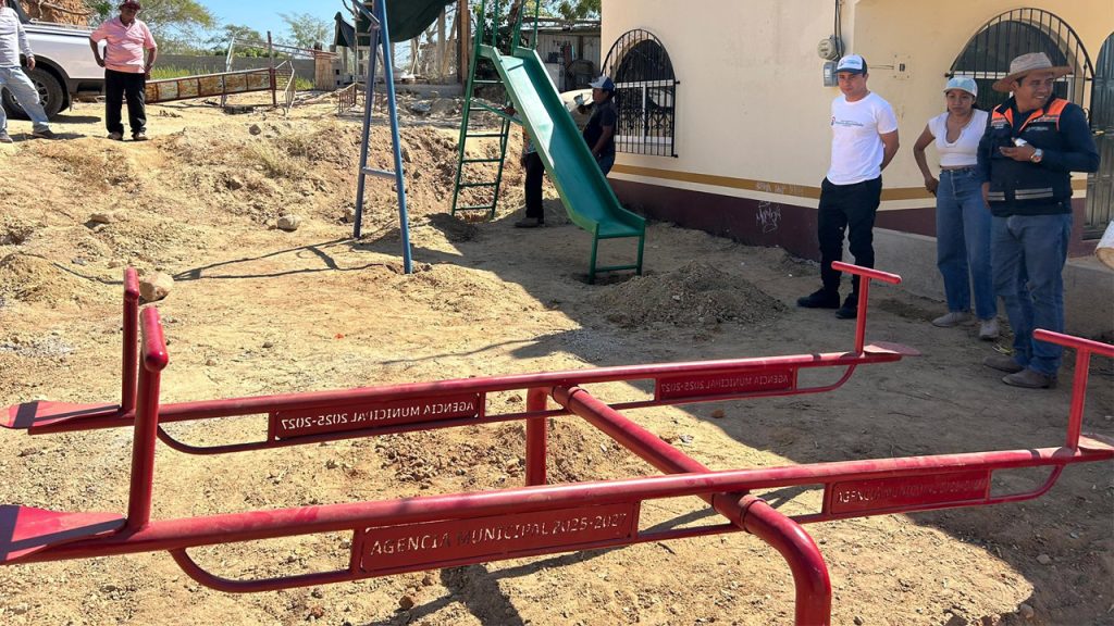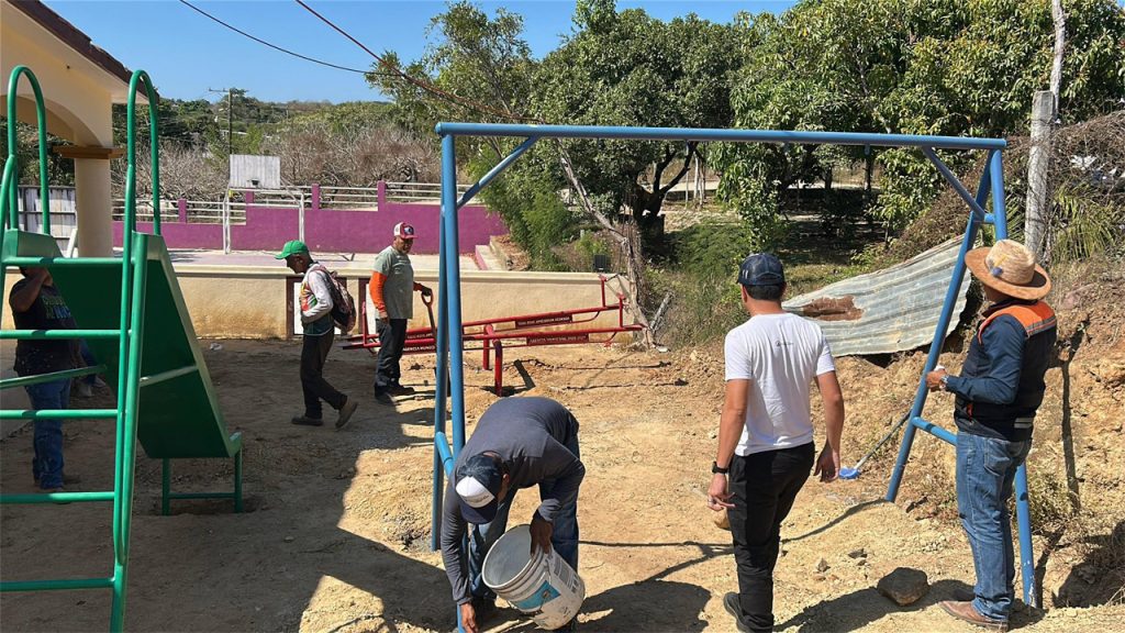 Puerto Escondido, Mixtepec, Oax. – Con el objetivo de mejorar los espacios públicos y fomentar la convivencia comunitaria, personal de la Agencia Municipal, en coordinación con vecinos y delegados, inició la instalación de juegos infantiles en las colonias Independencia y Arroyo Seco. Estas acciones forman parte de un esfuerzo conjunto para brindar áreas seguras y adecuadas para la recreación de niñas y niños, fortaleciendo así el tejido social en estas zonas.