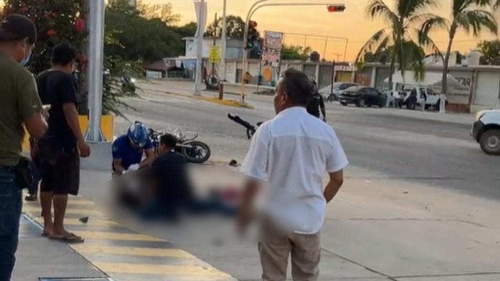 Puerto Escondido, Mixtepec, Oax. —Un motociclista perdió la vida y otro más resultó gravemente lesionado tras un accidente ocurrido la mañana de este domingo 30 de noviembre sobre la Carretera Federal 200, a la altura de la gasolinera G500, en el crucero de la Ave. Salinas de Gortari en Puerto Escondido, jurisdicción de San Pedro Mixtepec.