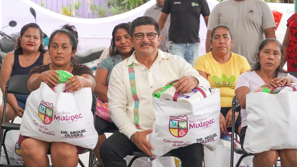 San Pedro Mixtepec, Oax.— El Gobierno Municipal de San Pedro Mixtepec, que encabeza el Dr. Miguel Olvera, en coordinación con el DIF Municipal, continúa impulsando acciones en favor del bienestar de las familias, a través de la entrega de apoyos alimentarios en diversas localidades del municipio.