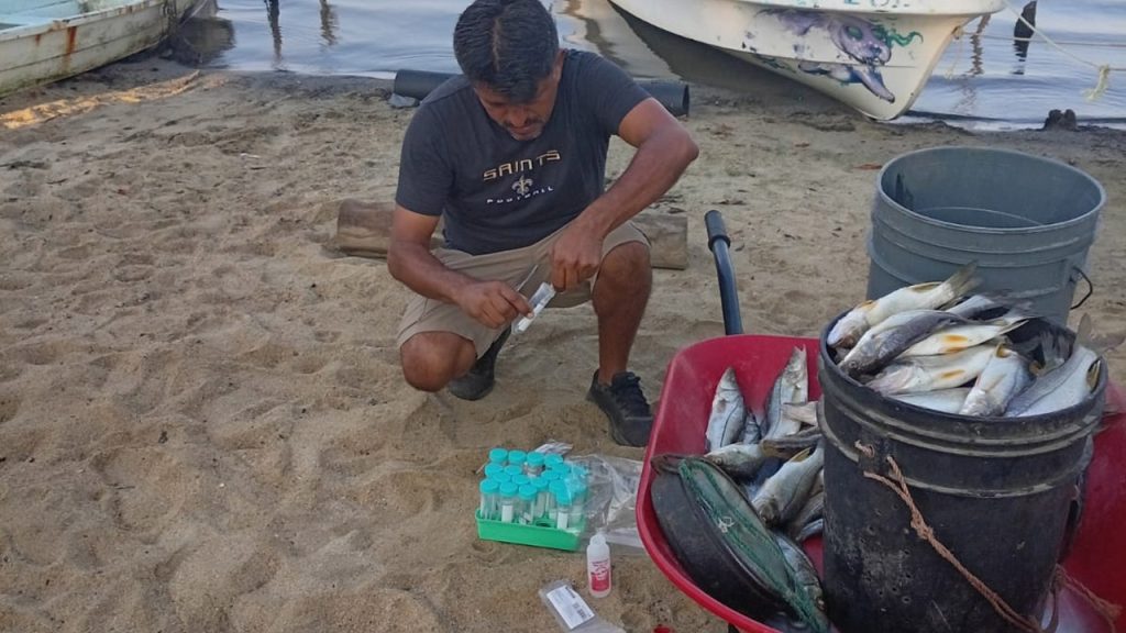 A través del director de Pesca, ingeniero Antonio Guzmán, se mantienen trabajos coordinados con investigadoras e investigadores de El Colegio de la Frontera Sur (ECOSUR), como parte de un proyecto enfocado en el estudio de las poblaciones de róbalo en este importante sistema lagunar.