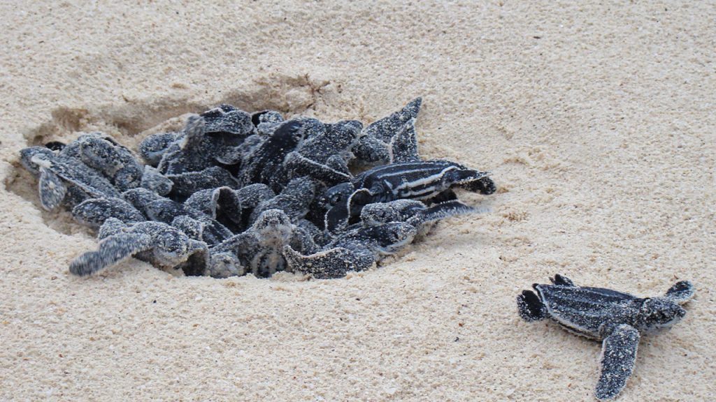 La tortuga laúd es la especie de tortuga marina más grande del mundo y se encuentra en peligro crítico de extinción en el Pacífico Oriental, con poblaciones que han disminuido drásticamente debido a la pérdida de hábitat, la captura incidental en pesquerías y el saqueo de nidos. Por ello, la protección de los nidos y la atención en viveros de incubación son acciones fundamentales para incrementar las posibilidades de que las crías lleguen al mar y sobrevivan en sus primeros días de vida.
