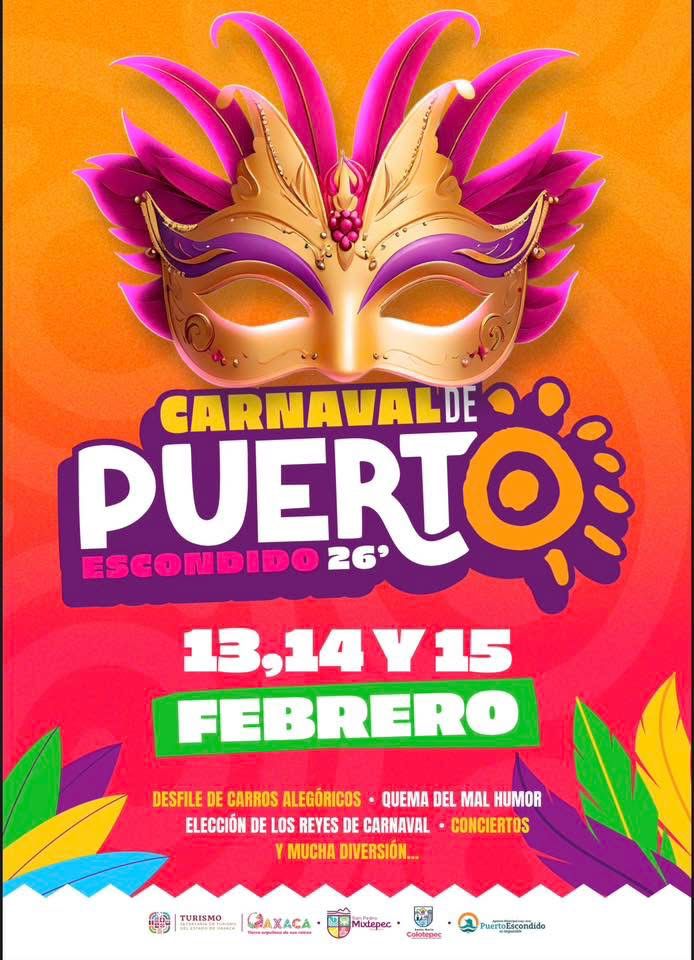 Durante los días 13, 14 y 15 de febrero, Puerto Escondido se vestirá de color, música y alegría con la celebración del Carnaval, una de las tradiciones más representativas y esperadas por la comunidad. Así lo dieron a conocer autoridades municipales de San Pedro Mixtepec y Santa María Colotepec en conferencia de prensa. Las autoridades dijeron que este festejo busca fortalecer la identidad cultural, la convivencia social y la promoción turística del destino turístico.