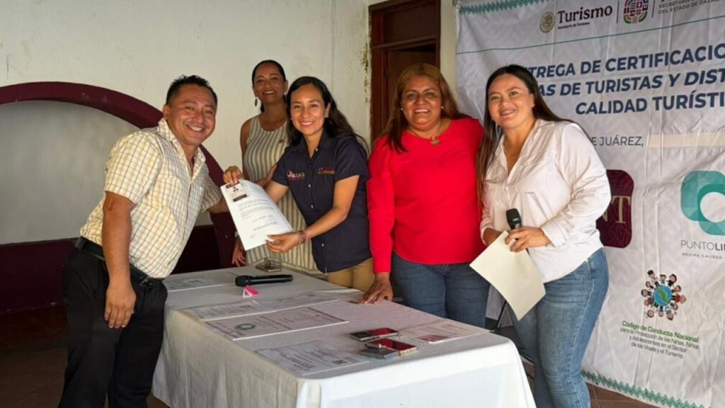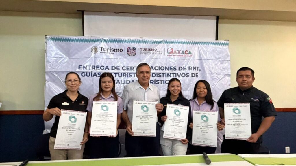 OAXACA, Oax. —La Secretaría de Turismo del Estado de Oaxaca (Sectur Oaxaca) entregó un total de 206 certificados y distintivos de calidad turística a prestadores de servicios en los destinos de Puerto Escondido y Bahías de Huatulco, con el objetivo de fortalecer la profesionalización y competitividad turística de estas zonas costeras.